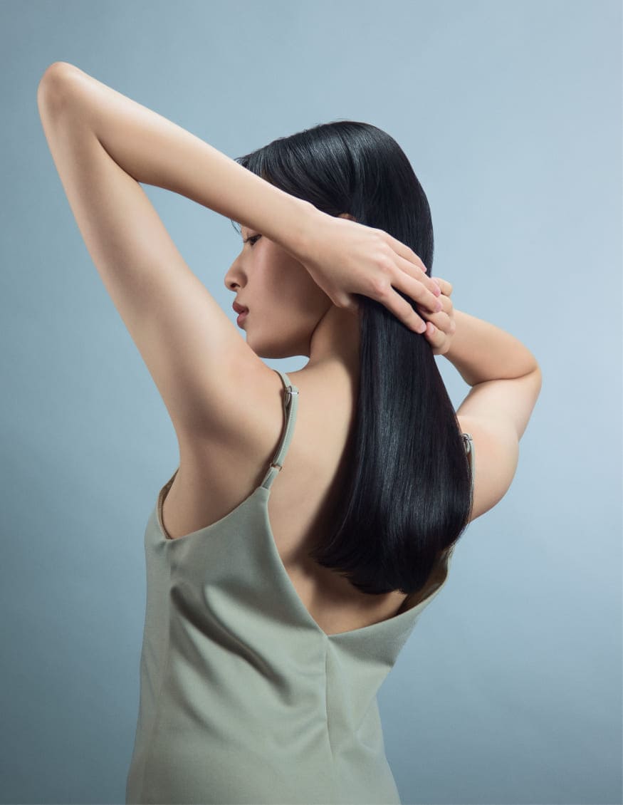 自然なまとまりと軽やかさを両立。動くたびに柔らかく揺れ、髪に上質なうるおいと輝きを与え毛先までまとまります。