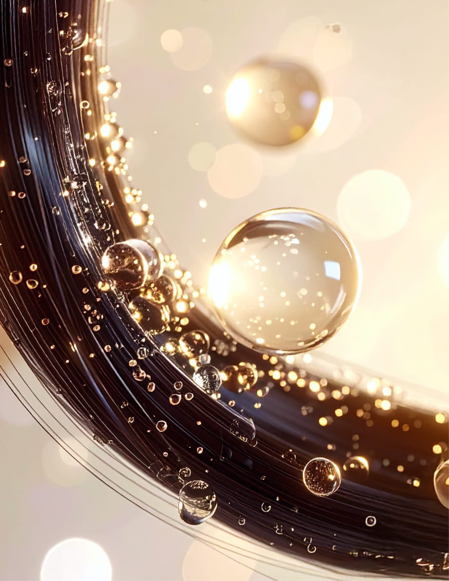 繊細な泡が髪の一本一本をふわりと包み込み、内側まで澄んだうるおいを届けます。洗い流したあとも柔らかく、光をまとったようなみずみずしさが続きます。